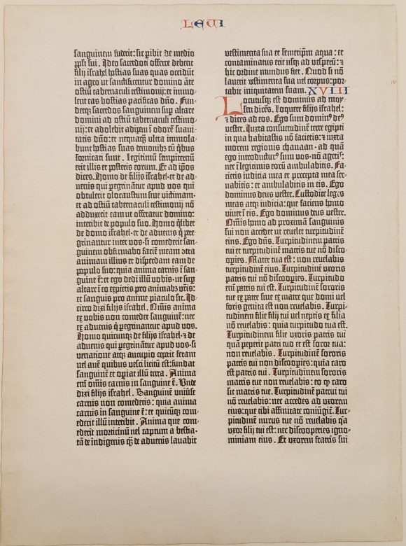 Let’s start at the very beginning – a very good place to start, as Maria Von Trapp once said. Here, in all its fifteenth-century glory, is our Gutenberg bible leaf. Carl Weeks acquired this piece from New York book dealer Gabriel Wells in the 1920s.