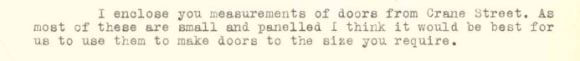 “We have decided with you that it is best for you to use the Crane Street doors to make doors of the size we require, and measurements will be sent you soon.”